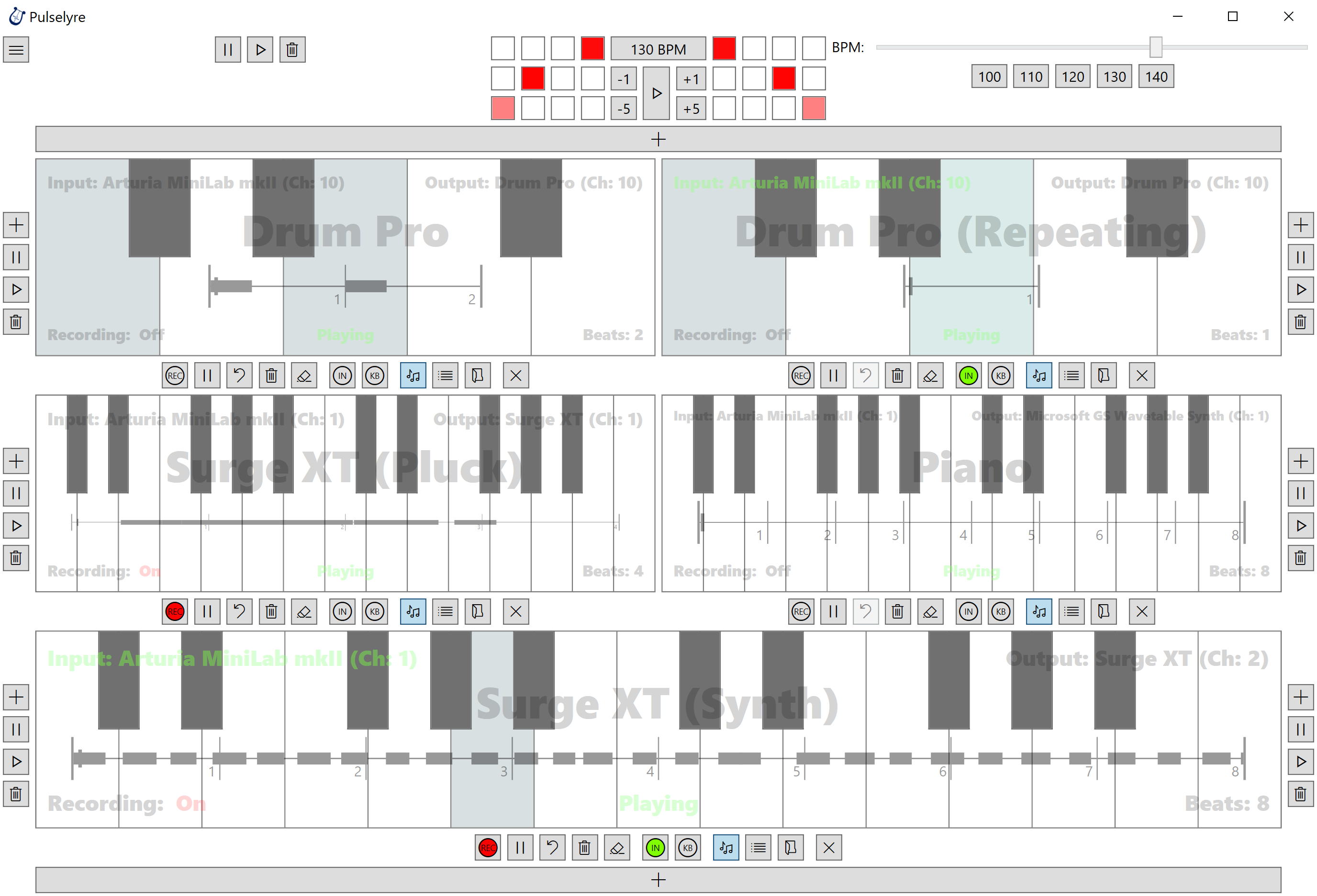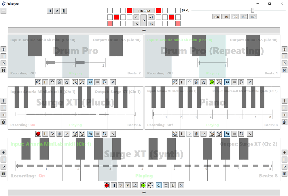 Pulselyre is a light weight MIDI recording and sequencing application built specifically for creating multi-layered electronic music live.